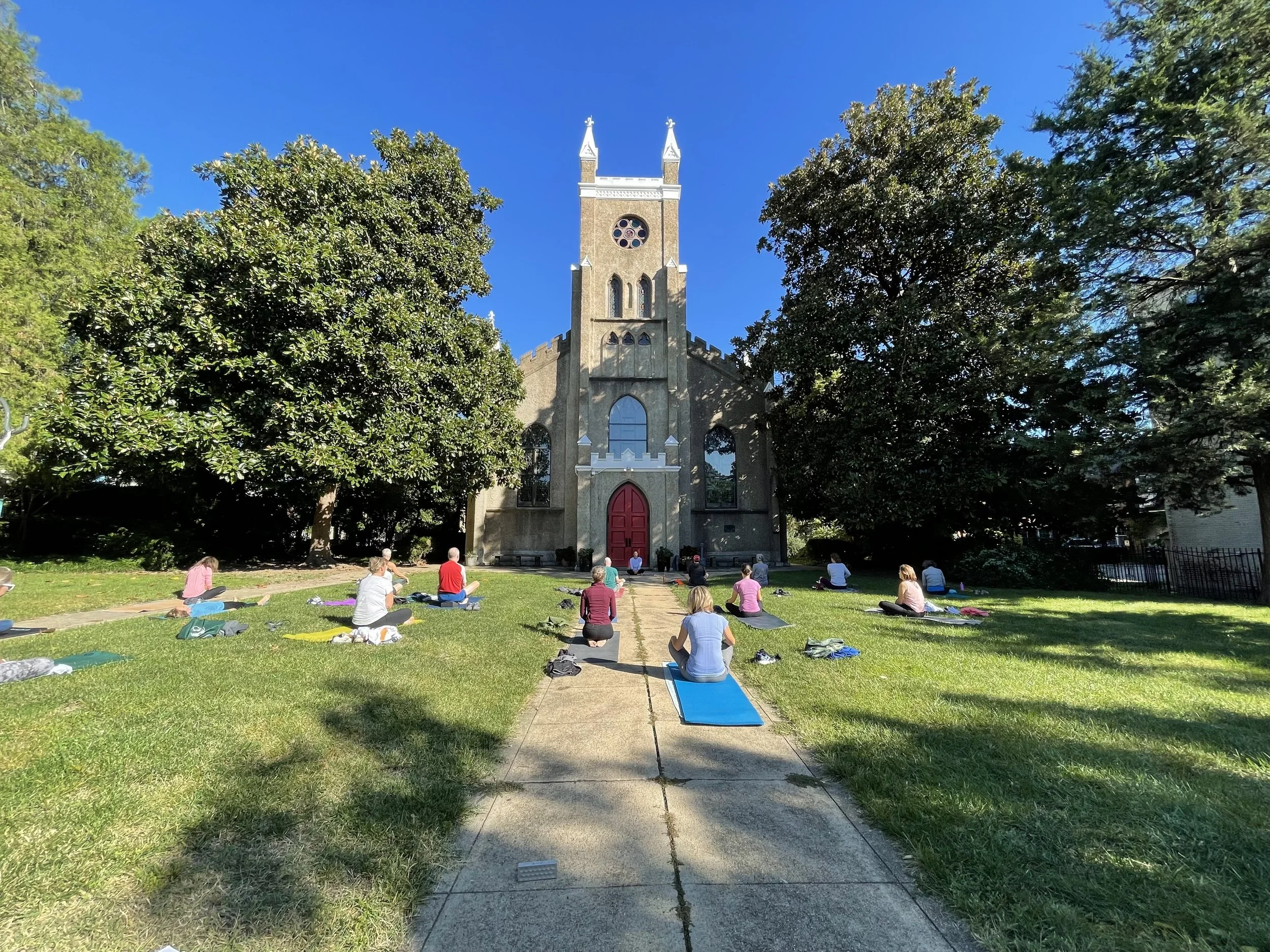 The monthly class is offered free of charge. No registration is required. Enter via back courtyard. Class is held indoors in the Parish Hall. Please bring your own yoga mat.